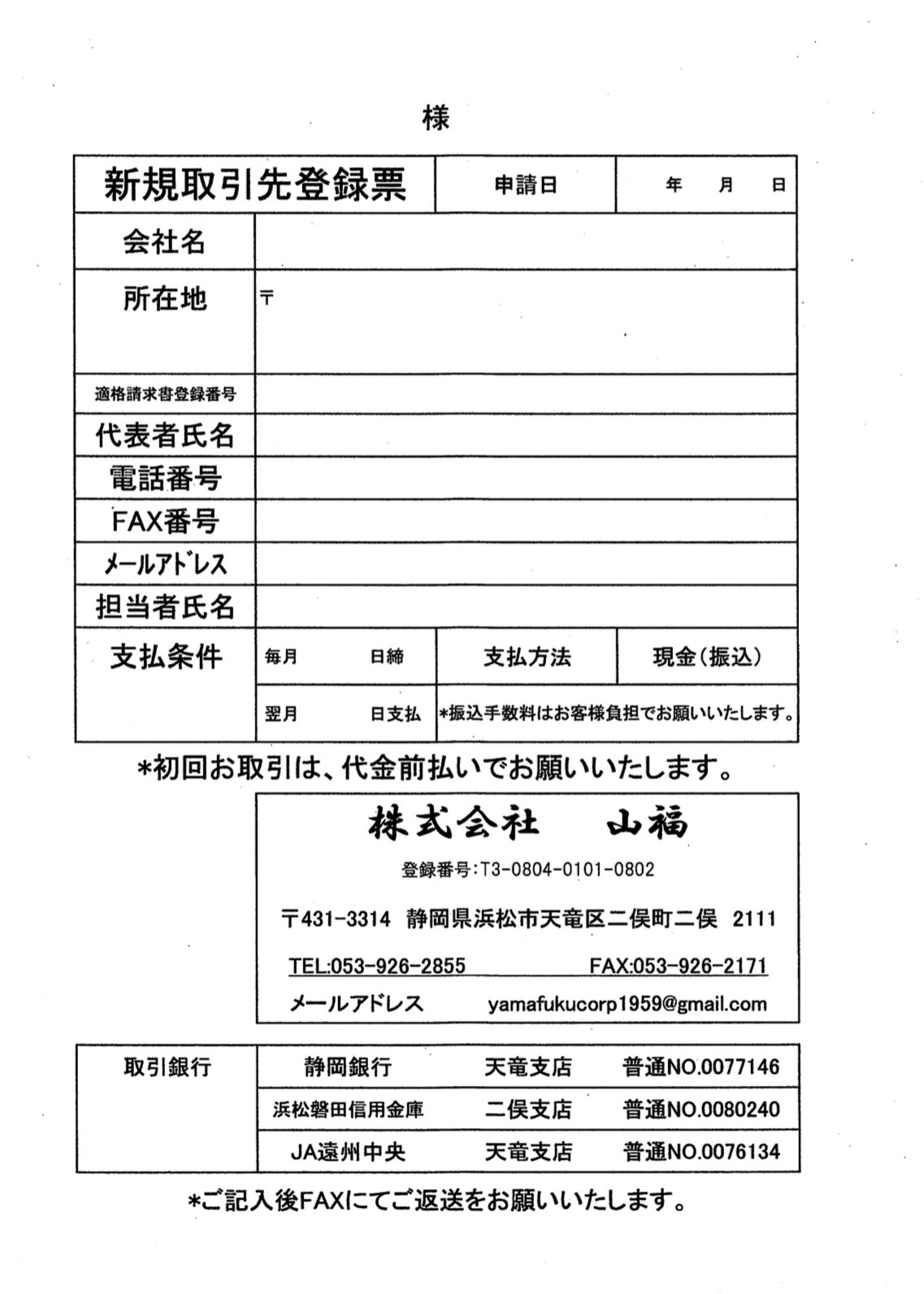 ※口座登録ご希望の企業様は、以下の画像を印刷して当社までFAXをよろしくお願い致します。