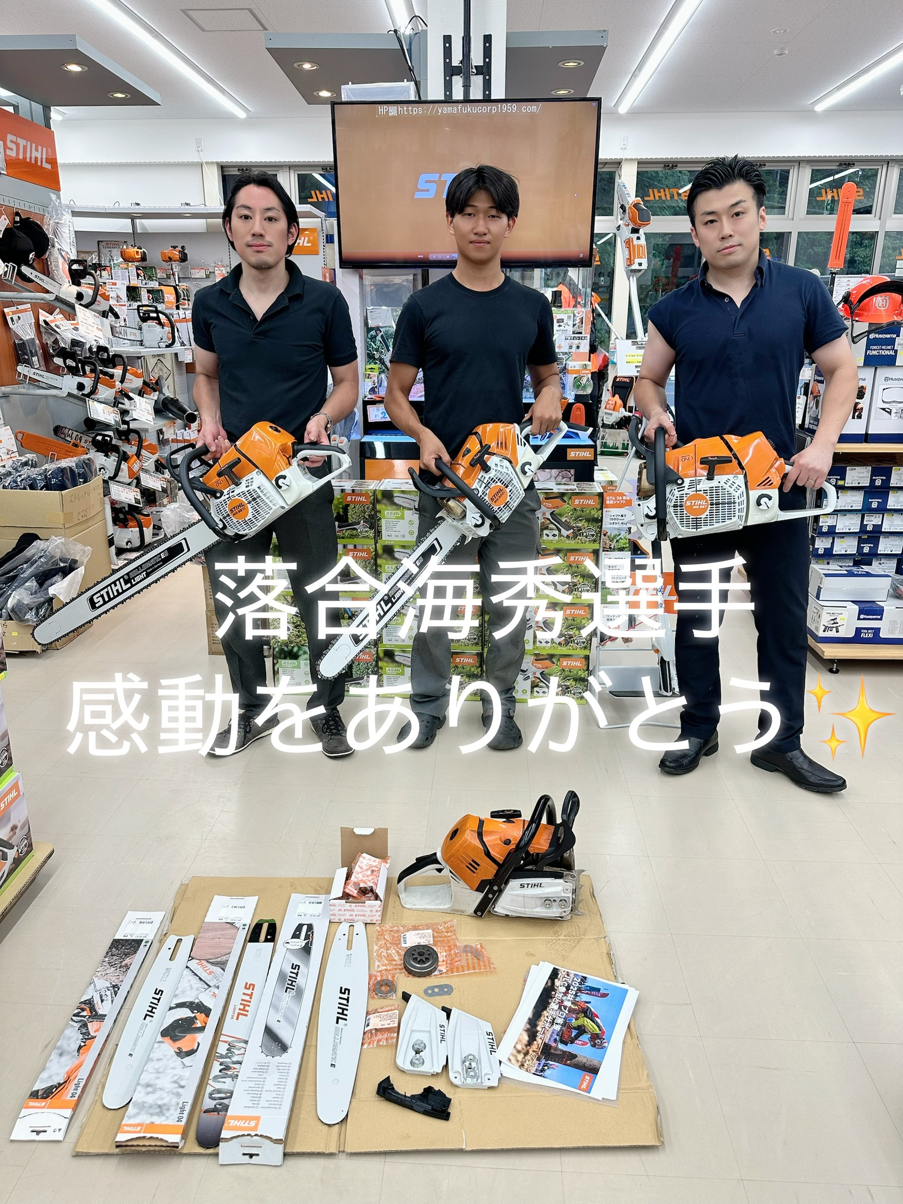 STIHL社と共に当社もサポートさせていただいている、JLC全国トップレベルの若き実力者、落合海秀選手(株式会社フジイチ様所属)は、3種目の内「簡易伐倒」と「枝払い」で1位のポイントを獲得するなど、さすがの腕前を見せてくれました💪