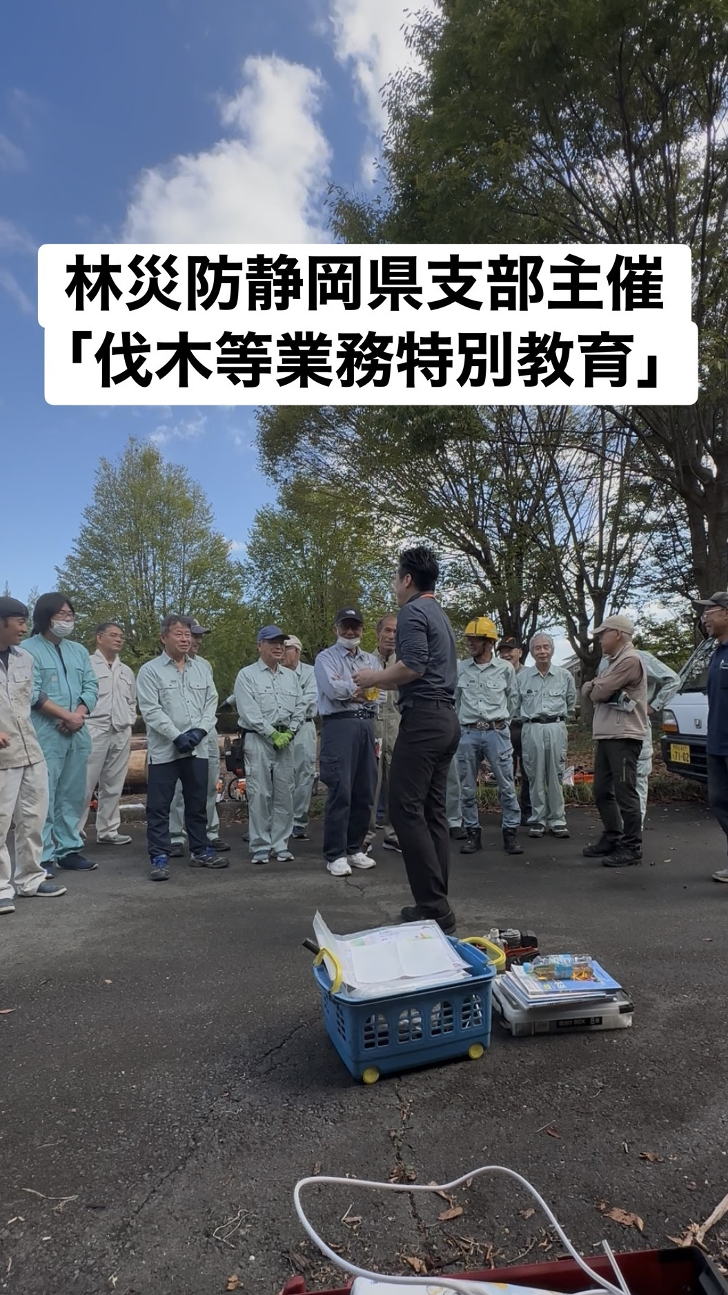 2025年10月17日に静岡県農林技術研究所森林・林業研究センターにて行われた、林災防静岡県支部主催の「伐木等業務特別教育」に当社スタッフが、チェンソーの講師として参加させていただきました。